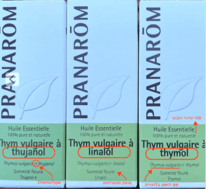 מכאן החשיבות לקרא את התוית על הבקבוק ולוודא היטב את השם הלטיני של השמן, ואת הchimiotype שלו,